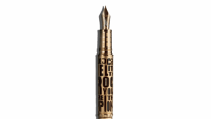 No corpo da caneta, os instrumentos da banda estão inscritos em relevo. O desenho inclui até o microfone de Freddie Mercury, cujo pedestal, aliás, inspira também o clipe da peça. Já a silhueta superior da tampa evoca a coroa que o rockstar usava em cena. A pena, toda em ouro 14 quilates, por outro lado, evoca o brasão da banda, com suas referências astrológicas e a fênix da imortalidade.